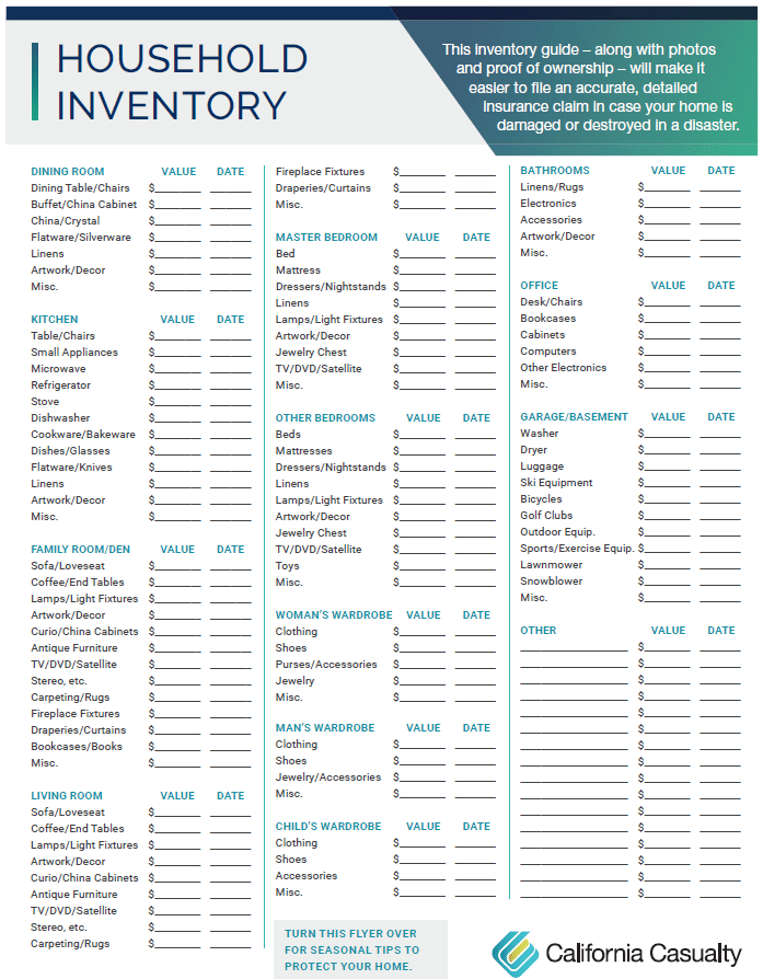 Trying to tally what needs to be replaced is not something you want to do in the event of a claim, so completing your inventory now will give you some peace of mind if the worst should happen.